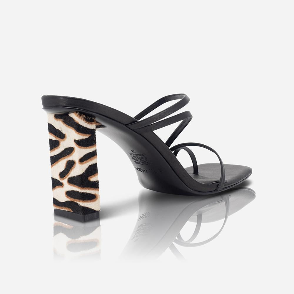 The Theo heel is the epitome of modern femininity. A contemporary square 8cm heel is balanced with an angular toe shape and finished with delicate, barely there straps that wrap the toe and secure the front of the foot.